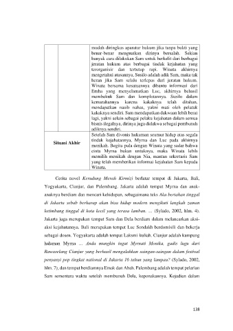 sebagai dosen. Yogyakarta adalah tempat Laksmi kuliah. Cianjur adalah kampung