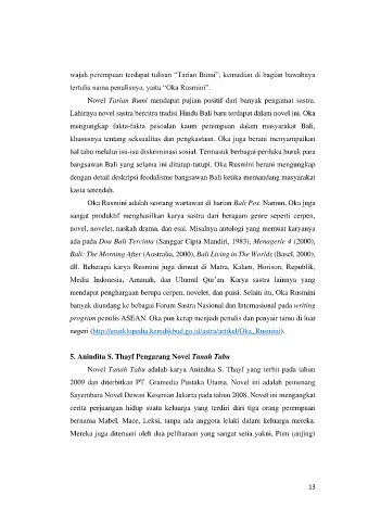 Lahirnya novel sastra bercitra tradisi Hindu Bali baru terdapat dalam novel ini. Oka