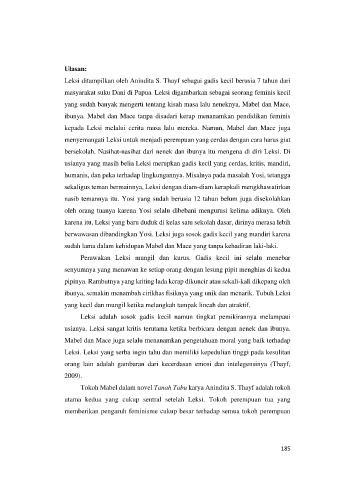 berwawasan dibandingkan Yosi. Leksi juga sosok gadis kecil yang mandiri karena