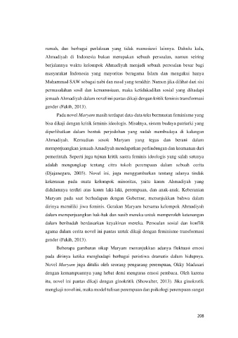 jemaah Ahmadiyah dalam novel ini pantas dikaji dengan kritik feminis transformasi