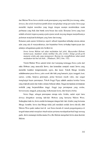 dirinya diinginkan seorang laki-laki Hobone yang bernama Malom Woss.