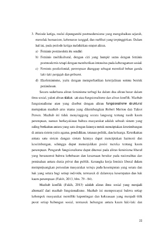 perempuan. Pengaruh fungsionalisme dapat ditemui pada aliran feminisme liberal