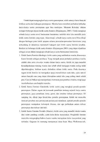 1. Kritik Sastra Feminis Ideologis; kritik sastra yang melibatkan wanita, khususnya