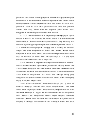 relokasi lahan ke perkebunan sawit. Wis dan warga dengan tegas menolak karena