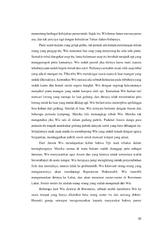 menjebol pintu ruangan yang sudah keropos oleh api. Kemudian Wis berlari-lari