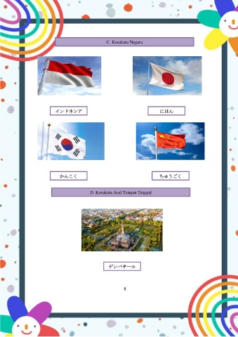 C. Kosakata Negara hh インドネシア にほん かんこく ちゅうごく D. Kosakata Asal Tempat Tinggal hh デンパサール 8