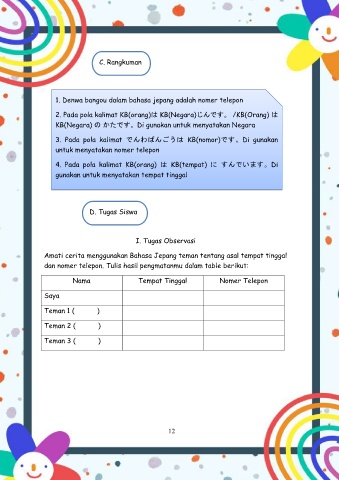 tinggal dan nomer telepon. Tulis hasil pengamatanmu dalam tabel berikut