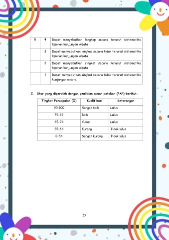 I. Skor yang diperoleh dengan penilaian acuan patokan (PAP) berikut.