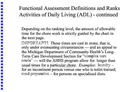 “complex Term Care Development Section for “complex care needs” --- will the AHHS program allow for longer than Examples: laundry – for an incontinent person versus one who is toilet trained; meal preparation – for persons on specialized diets.