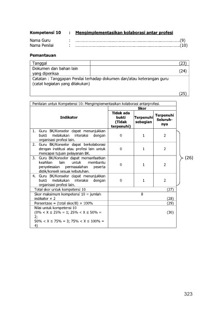 profesi BK/Konselor untuk 0 1 2 Skor maksimum kompetensi 10 = jumlah 8