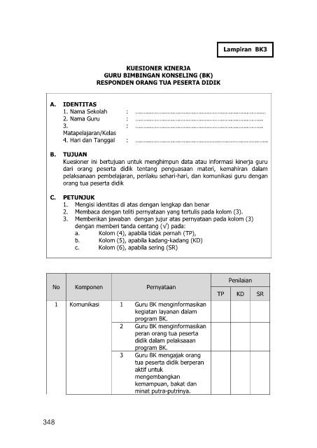 Kuesioner ini bertujuan untuk menghimpun data atau informasi kinerja guru