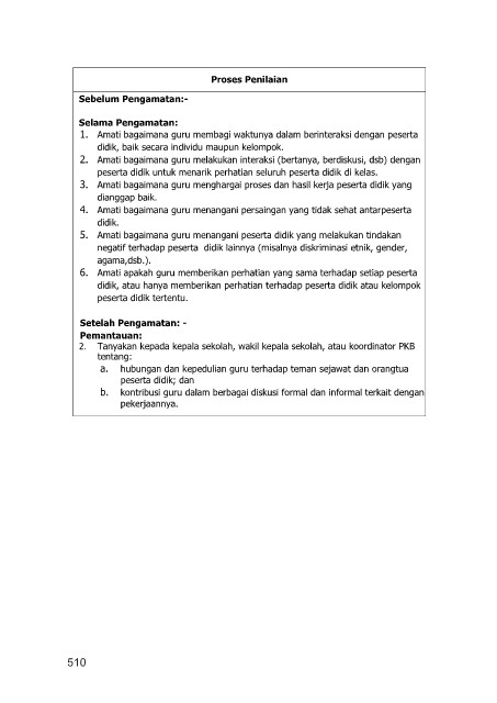 6. Amati apakah guru memberikan perhatian yang sama terhadap setiap peserta