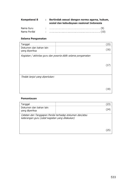 selain penilaian formal yang dilaksana- 0 1 2 Kegiatan / aktivitas guru dan peserta didik selama pengamatan