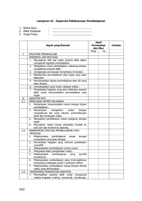 Lampiran 41 : Supervisi Pelaksanaan Pembelajaran