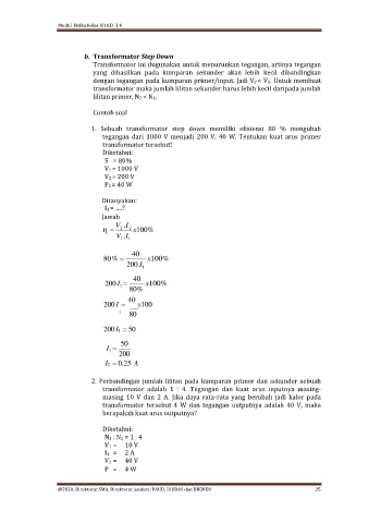 1. Sebuah transformator step down memiliki efisiensi 80 % mengubah