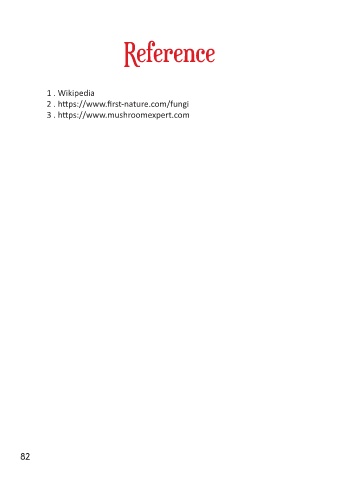 Reference 1 . Wikipedia 2 . https://www.first-nature.com/fungi 3 . https://www.mushroomexpert.com 82