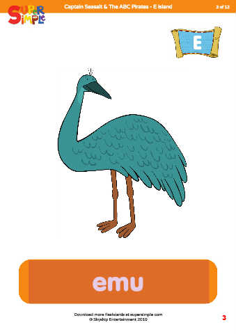 Captain Seasalt & The ABC Pirates - E Island 2 of 12 E emu Download more flashcards at supersimple.com © Skyship Entertainment 2019