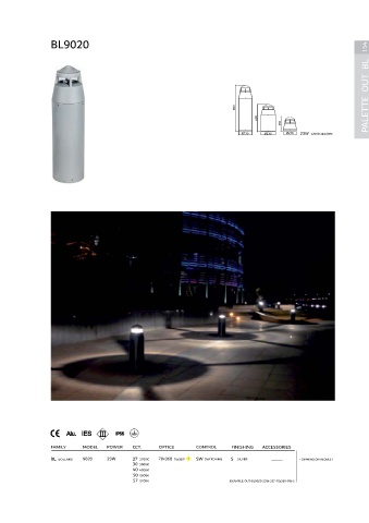FAMILY MODEL POWER CCT. OPTICS CONTROL FINISHING ACCESSORIES BL BOLLARD 9020 23W 27 2700K 70x360 70x360° SW SWITCHING S SILVER • DIMMING ON REQUEST FAMILY MODEL POWER CCT. OPTICS CONTROL FINISHING ACCESSORIES BL BOLLARD 9020 23W 27 2700K 70x360 70x360° SW SWITCHING S SILVER • DIMMING ON REQUEST