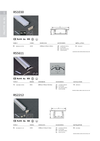 RS RECESSED SYSTEM 2212 1000mm X 22mm X 12mm AP IN9003 RD RECESSED 127