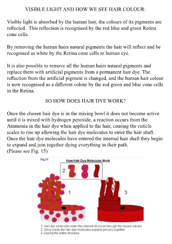 VISIBLE LIGHT AND HOW WE SEE HAIR COLOUR: Hair dye not only dyes the internal structure it also dyes the cuticle scales