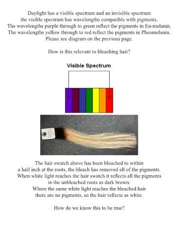 by the human eye when white light (Daylight) is absorbed and reflected. How is this relevant to bleaching hair?