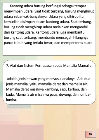 menyimpan udara. Saat tidak terbang, burung menghirup