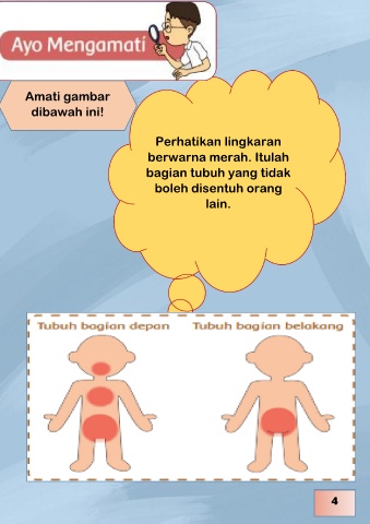 Amati gambar dibawah ini! Perhatikan lingkaran berwarna merah. Itulah bagian tubuh yang tidak boleh disentuh orang lain. 4