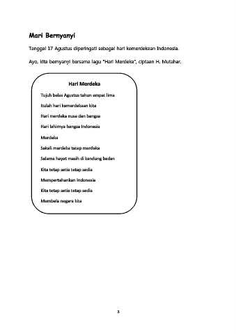 Ayo, kita bernyanyi bersama lagu “Hari Merdeka”, ciptaan H. Mutahar.