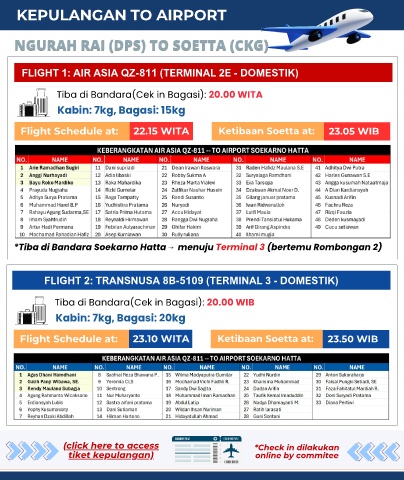 Flight Schedule at: 22.15 WITA Ketibaan Soetta at: 23.05 WIB