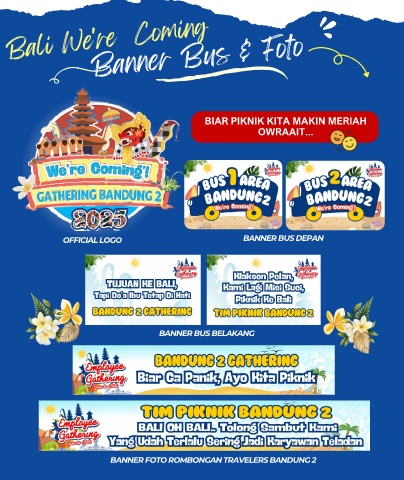 Bali We're Coming Banner Bus & Foto BIAR PIKNIK KITA MAKIN MERIAH OWRAAIT... OFFICIAL LOGO BANNER BUS DEPAN BANNER BUS BELAKANG BANNER FOTO ROMBONGAN TRAVELERS BANDUNG 2