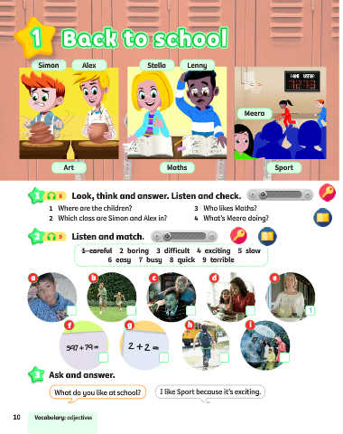 2 Which class are Simon and Alex in? 4 What’s Meera doing?