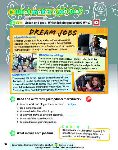 2   Read and write ‘designer’, ‘dancer’ or ‘driver’.