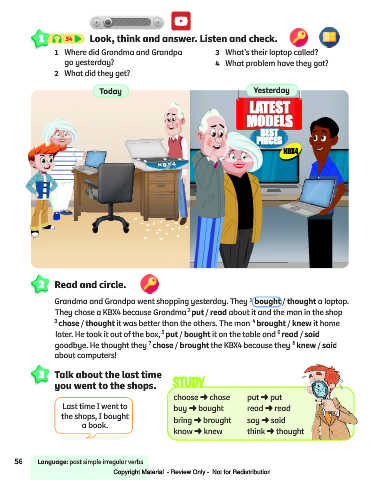 Grandma and Grandpa went shopping yesterday. They bought / thought a laptop.