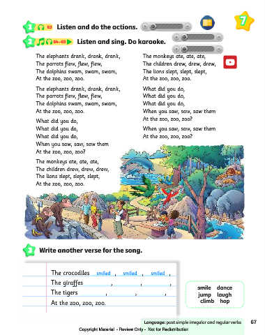The elephants drank, drank, drank, The monkeys ate, ate, ate,