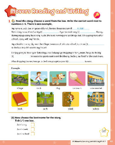 1 Read the story. Choose a word from the box. Write the correct word next to