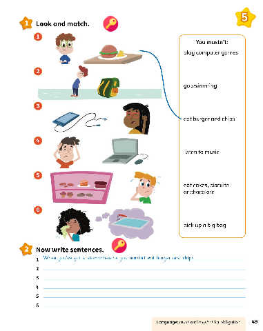 1 When you've got a stomach-ache you mustn't eat burger and chips.