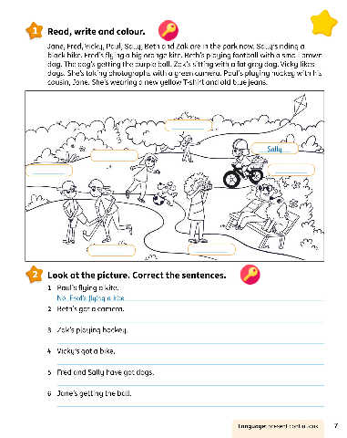 Jane, Fred, Vicky, Paul, Sally, Beth and Zak are in the park now. Sally's riding a