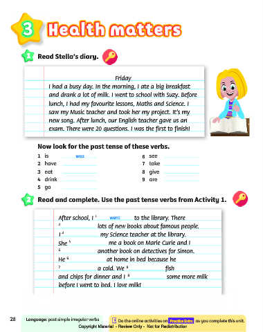28 Language: past simple irregular verbs Do the online activities on Practice Extra as you complete this unit.