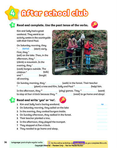 36 Language: past simple regular verbs Do the online activities on Practice Extra as you complete this unit.