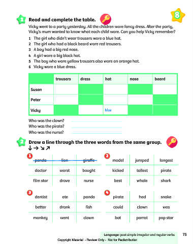 Vicky went to a party yesterday. All the children wore fancy dress. After the party,