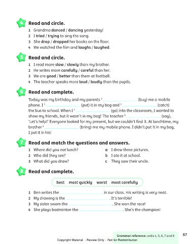 Grammar reference: units 4, 5, 6, 7 and 8 87