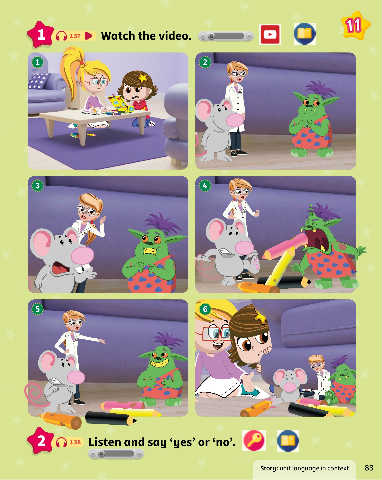 11 1 0 137 0 Watch the video. 2 13 Listen and say 'yes' or 'no'. Story: unit language in context 83