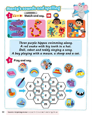 88 Sounds and spelling review:r / b /p/ d/t/a/e/th/i/sh/s/ng/m/ai