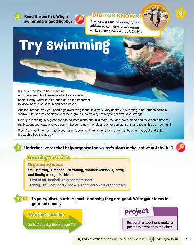 Underline words that help organise the writer's ideas in the leaflet in Activity 1.