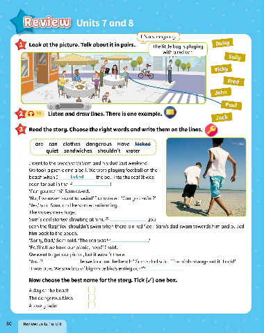 'You (4) leave food on the beach!' Sam's dad said. 'The birds always eat it. Look!'