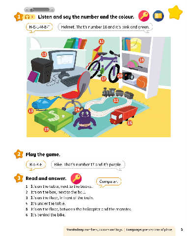 Vocabulary: numbers, colours and toys | Language: prepositions of place