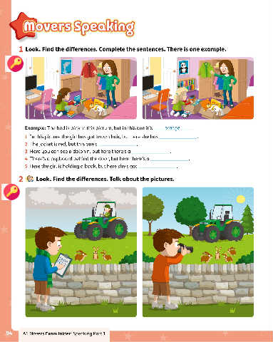 1 Look. Find the differences. Complete the sentences. There is one example.