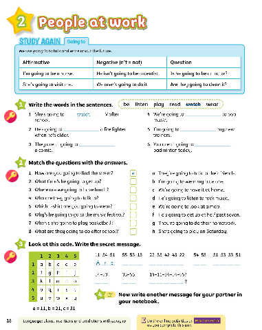 2 He's going to                 a fire fighter         5 I'm going to                  my new