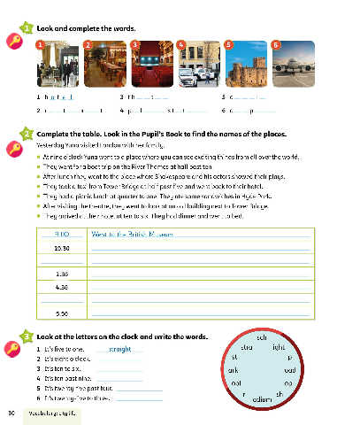 Complete the table. Look in the Pupil's Book to find the names of the places.