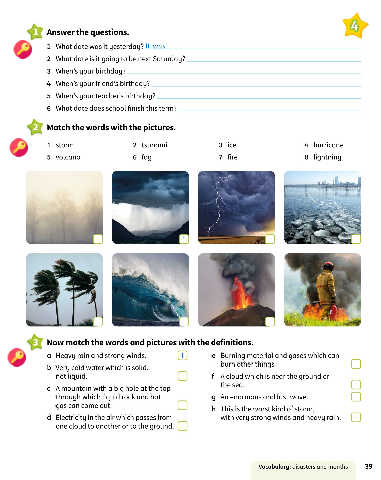 a Heavy rain and strong winds.                     e Burning material and gases which can